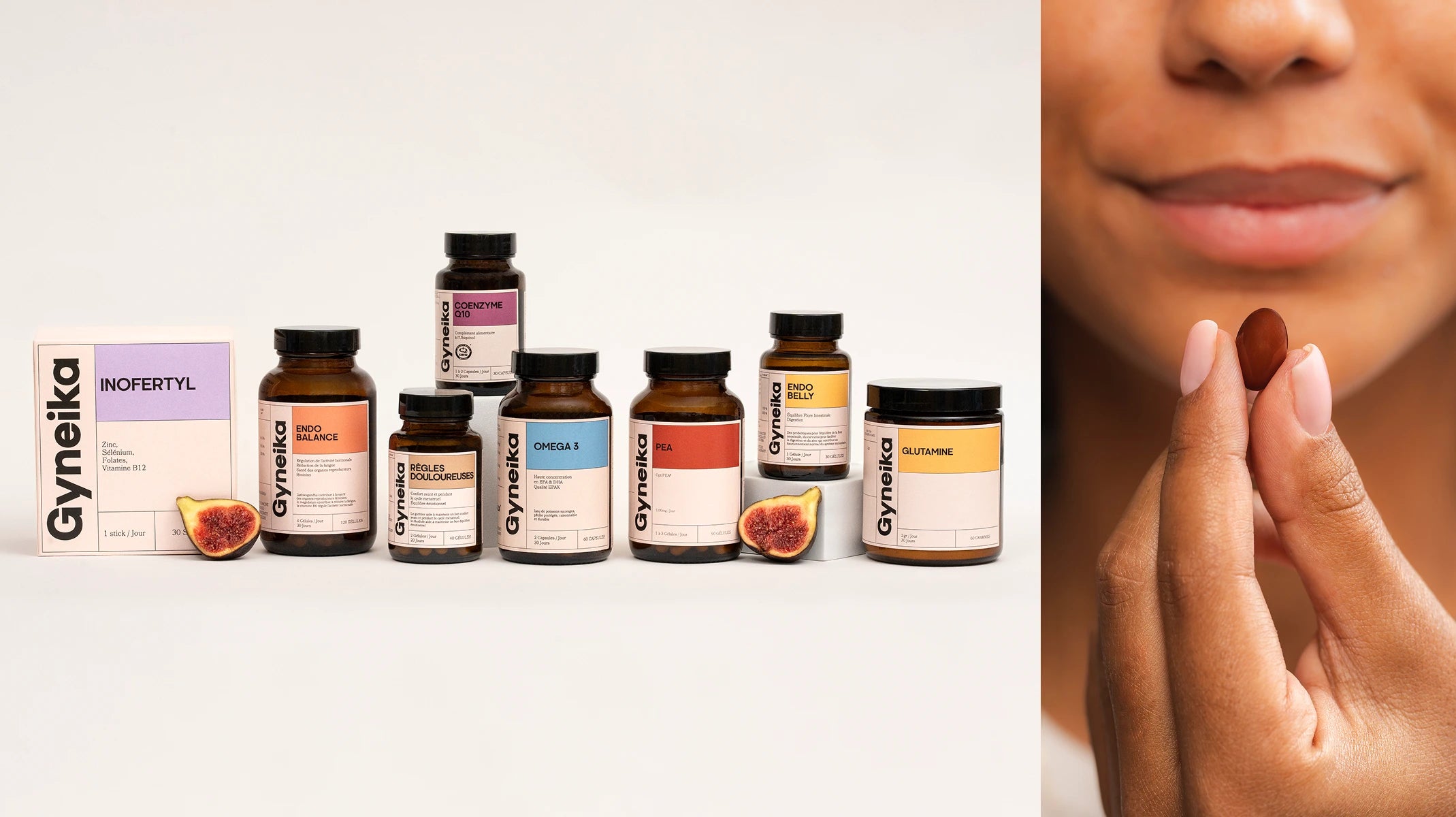 Mais nous ne nous arrêtons pas là. Chez Gyneika, nous sommes engagées à répondre aux besoins de la santé féminine dans sa globalité. Nos compléments alimentaires soutiennent aussi l’équilibre hormonal, la gestion du stress ou encore le bien-être digestif.